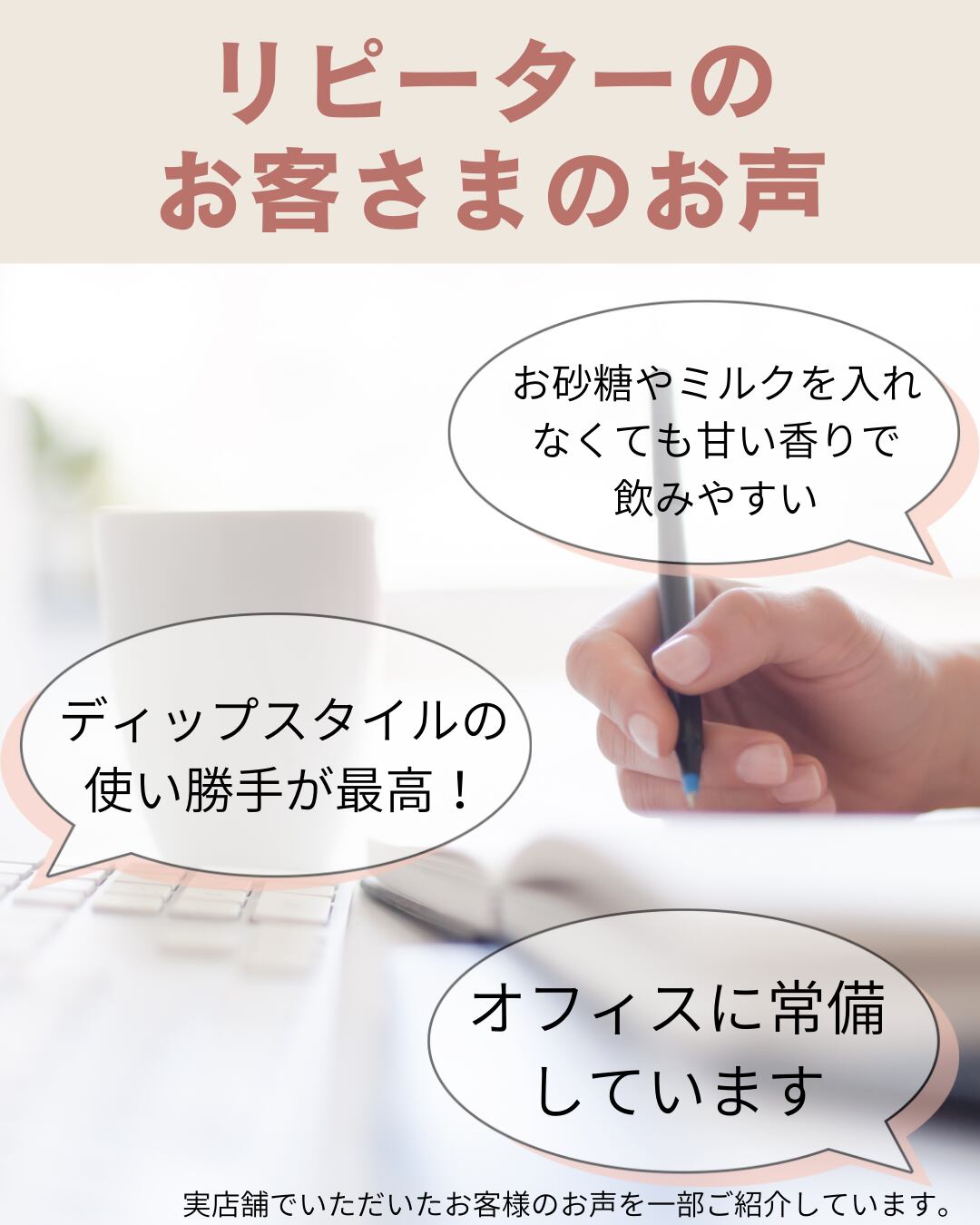 ◎コーヒー豆を製造直前に挽き、挽きたての鮮度が高い状態で製造をしています。